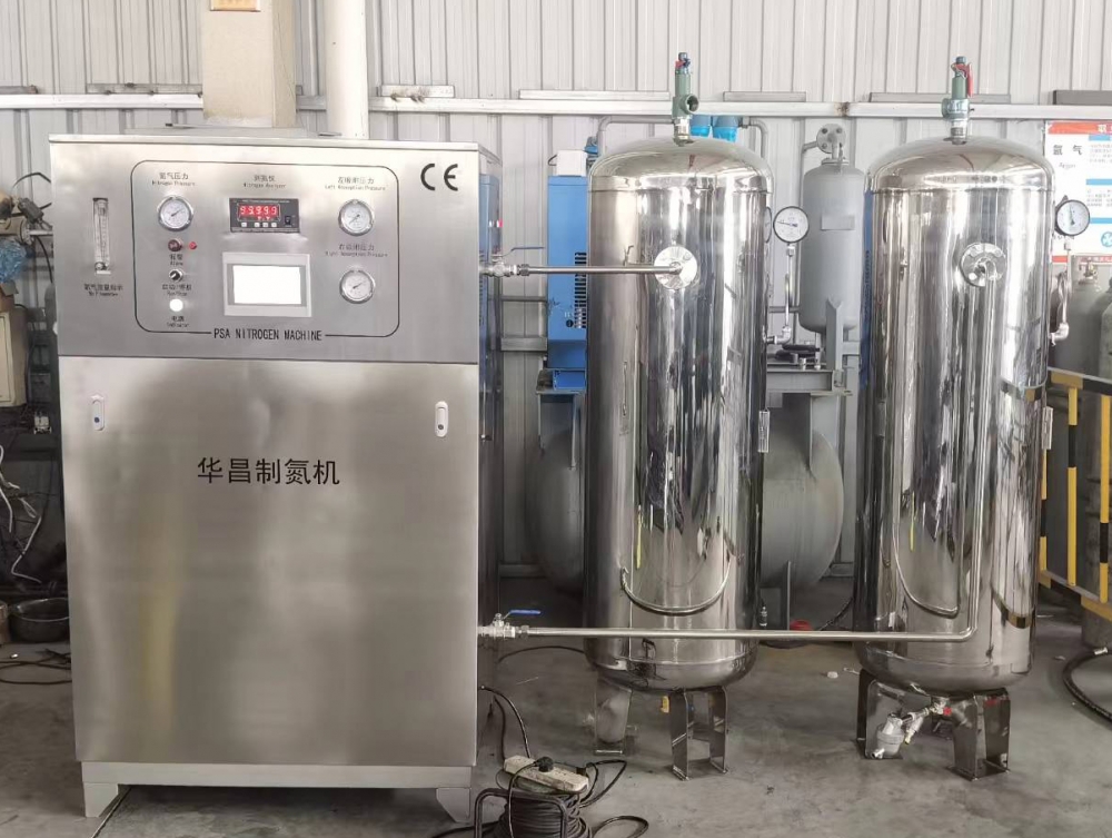 不銹鋼制氮機(jī)廣泛用于制藥、食品包裝等行業(yè)。吸附塔、儲氣罐、連接管路、外殼都是304不銹鋼
